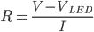 Сопротивление балластного резистора легко рассчитать, используя закон Ома и правила Кирхгофа. Чтобы рассчитать необходимое сопротивление резистора, нам необходимо из напряжения источника питания вычесть номинальное напряжение светодиода, а затем эту разницу разделить на рабочий ток светодиода: